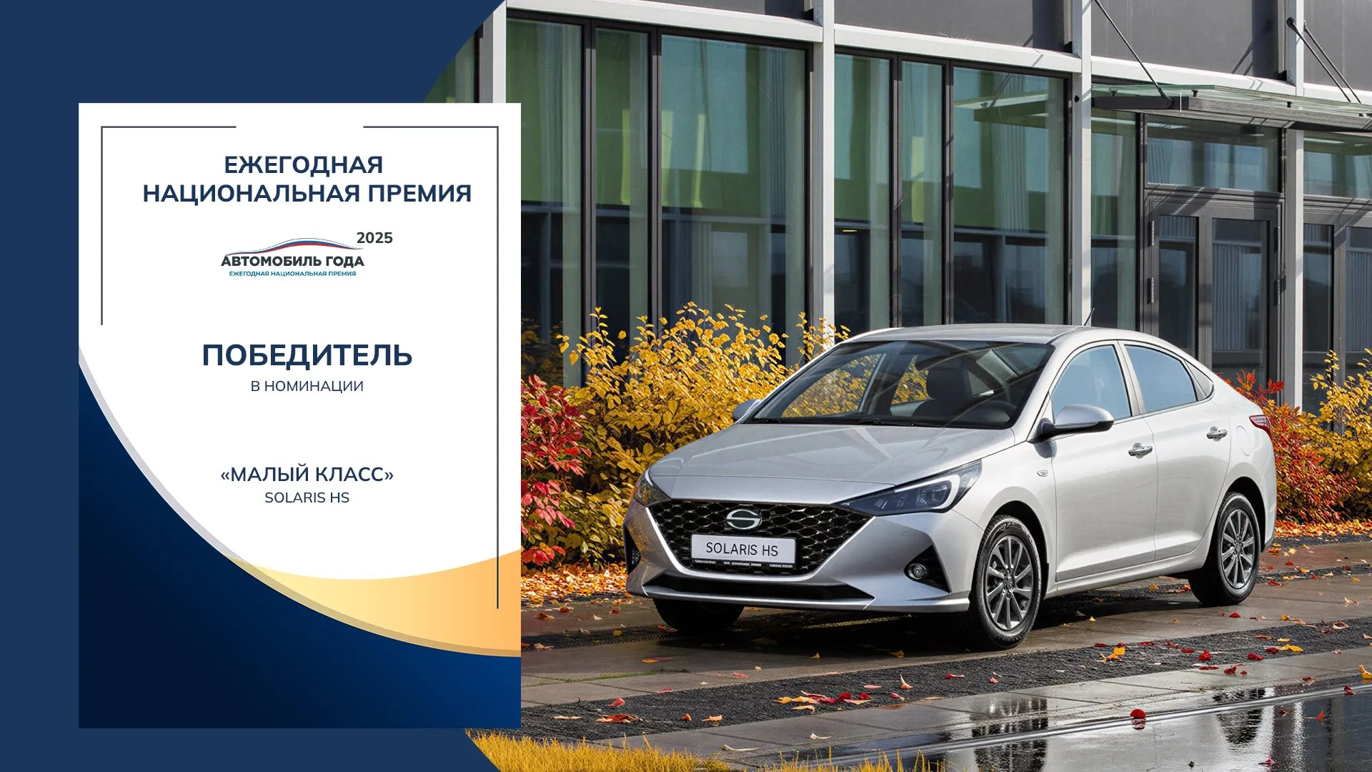 Седан Solaris HS стал победителем в номинации «Малый класс» по итогам всенародного голосования в премии «Автомобиль года в России».
